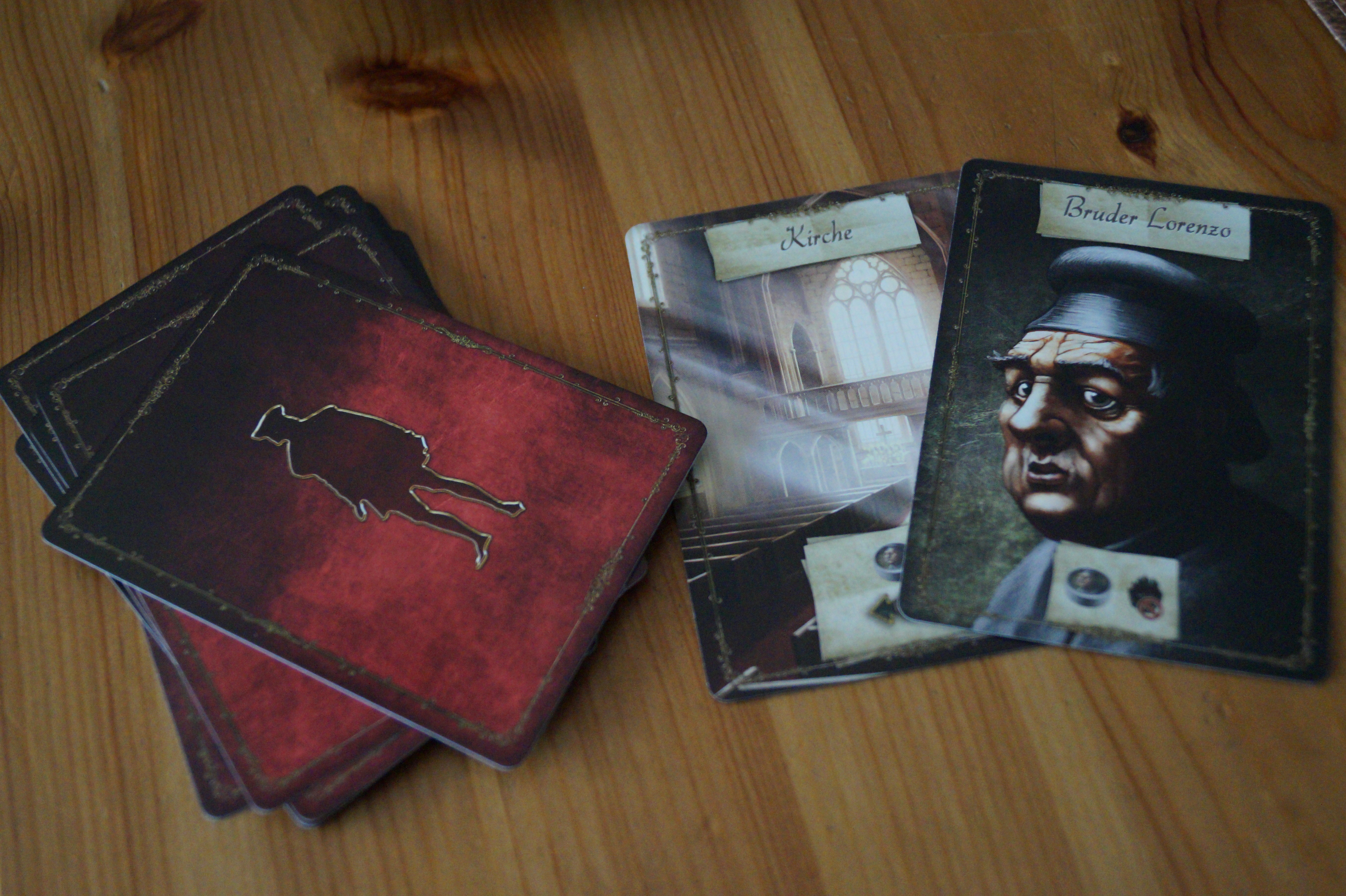 It is up to us whether we only see the mechanisms and how they interlock, or whether we use the means spread out before us to actively experience this story. During the game we rearrange the set pieces of the theatre play in order to go through our interpretation of the story. Instead of dialogue that delicately draws the characters, we try to understand and comprehend the choices of the other player. Instead of surprising twists in the plot, we see our chances dwindle with our freshly drawn hand of cards, or suddenly recognize the many great opportunities in them.