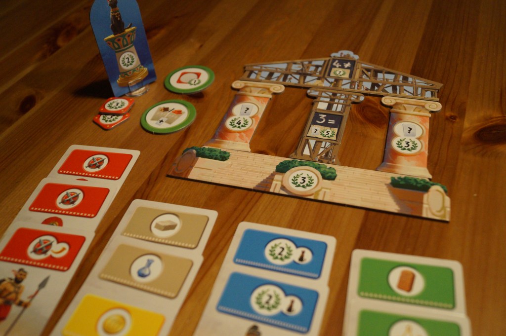 Some games surprise you. Not because they are unexpectedly fun or pointedly aren’t. They surprise you because their strengths are not where you expect them to be at first. 7 Wonders Architects, for example, clearly follows 2011‘s Kennerspiel des Jahres winner in name and theme. The short play time already tells you what you get in its bulky box: a shorter and beginner-friendly version of 7 Wonders. It is that; but it somehow isn’t and yet is that again. That’s what’s so surprising about it.