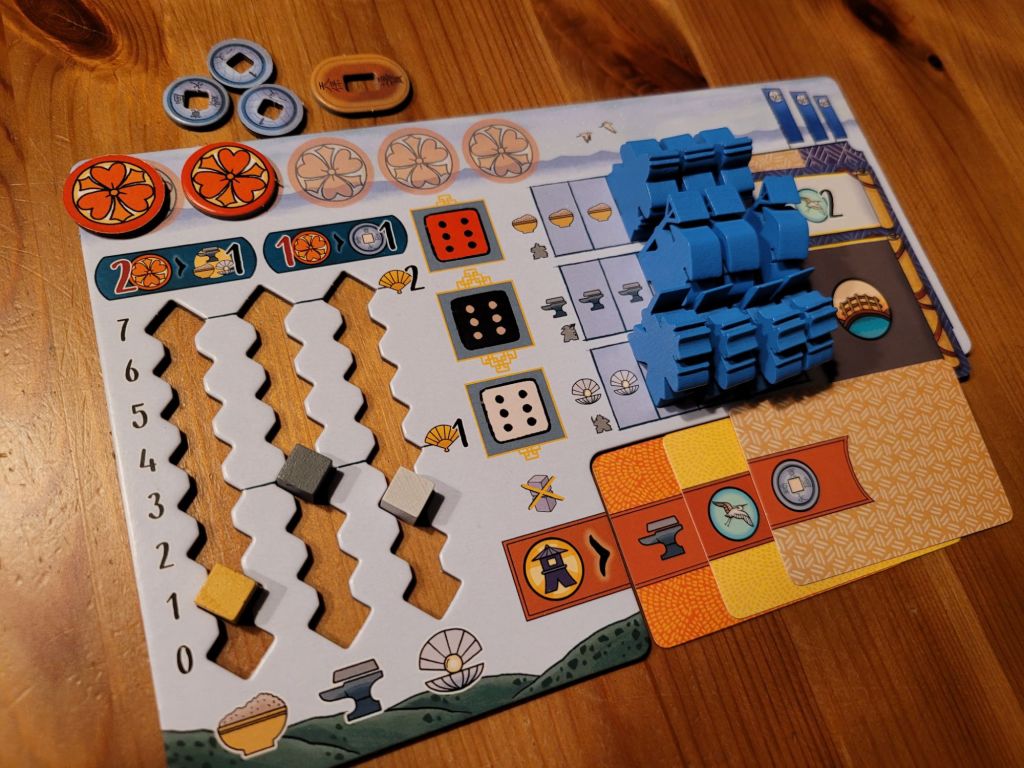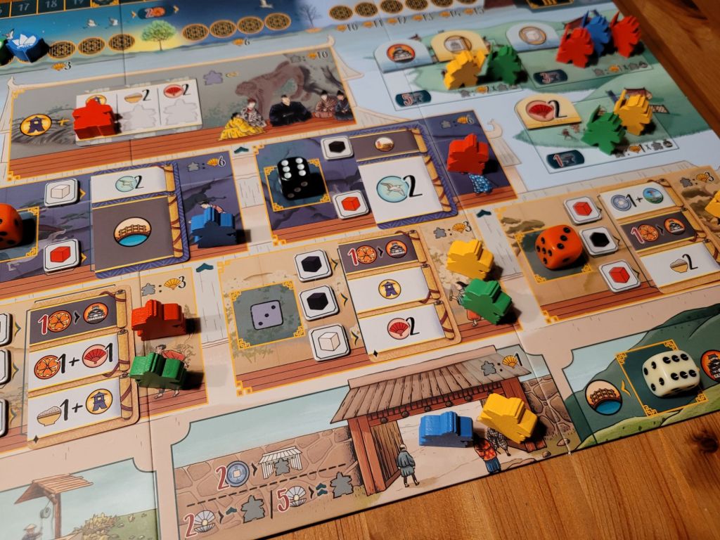 Most of the time in The White Castle is spent imagining your turn, thinking through its consequences and occasionally comparing its cost-benefit ration with other options. As soon as you’ve made a decision, your participation in the game ends for this turn. In a very general sense, this is somewhat reminiscent of Chess. Although Chess presents a far cleaner and easier to read board state. But at least the components in The White Castle are nicely colorful.
