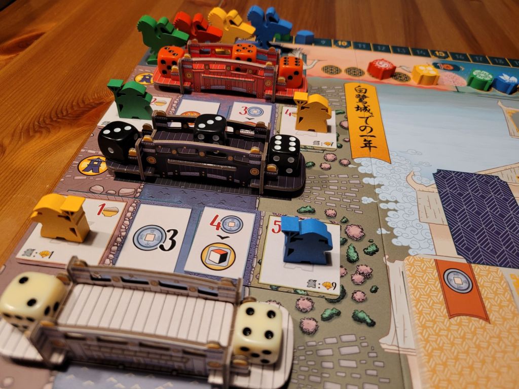 It’s often not quite clear why one action is more advantageous than another. Put more generally, it’s not always apparent which dice action gives you a tactical and which gives you a strategic benefit. Making this distinction really only becomes possible through sufficient experience with The White Castle. Which is to say you need to play training games repeatedly to get there. It is this layer of obscurity that might keep some groups from getting into the game’s flow. The White Castle posits itself exactly on the fine line between intriguing puzzle, that reveals its secrets only to the most studious players and an irritatingly convoluted arrangement of conflicting incentives.