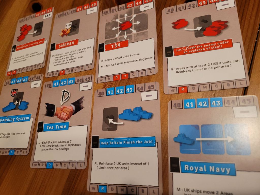 War & Write II is the follow-up to Mini WWII, which I hold in quite high esteem. That game presented an abstracted, strategic perspective on war in an unobtrusive manner. But in doing so, it involuntarily revealed the dearth of humanity inherent in that perspective. The game did not distinguish between troop sizes, nor did it introduce dice to simulate fog of war. It was a rigidly structured game in which we solved a logistical challenge. We invaded countries, sustained our presence on the board and researched technologies, to gain a tactical advantage. The number of casualties such actions would incur in the real world, were no consideration in Mini WWII. They only existed, if at all, as a crude comment at the table. I was impressed by the game because I felt that this pitiless reduction to small numbers felt refreshingly honest. The ugliest face of war belonged to what Germans call “Schreibtischtäter”: the guy making unconscionable decisions from the safety and comfort of his desk. That was the perspective we were given in Mini WWII.