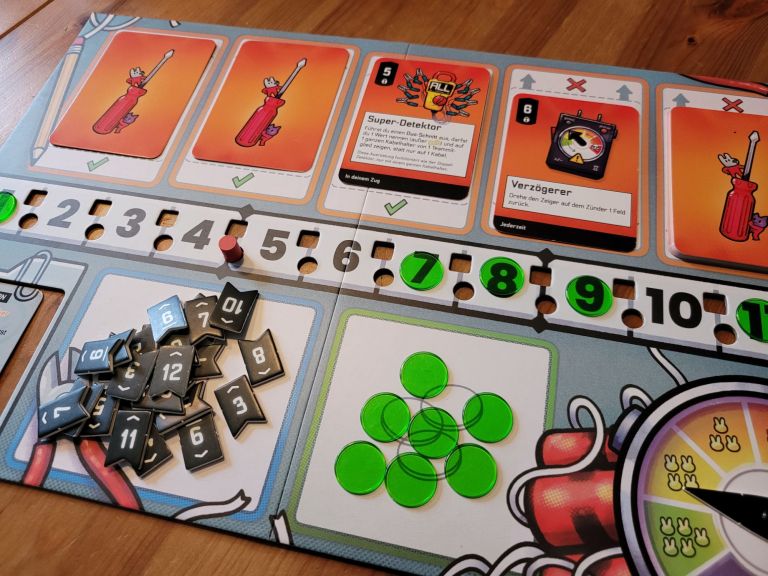 The other, obvious features of Bomb Busters is far less subtle. The components feel cost-effictient as opposed to luxurious. A point that was brought up a while ago with e-Mission (the German edition of Daybreak, which as produced locally to be in line with the game’s theme of environmental awareness). In that case the game’s topic was enough to quell some critics’ desire to voice their sense of entitlement, for fear of how that might make them look. Consequently it was only brought up quietly and as an aside. With Bomb Busters no such sense of decorum is necessary: a modern game ought to have material of a certain quality!