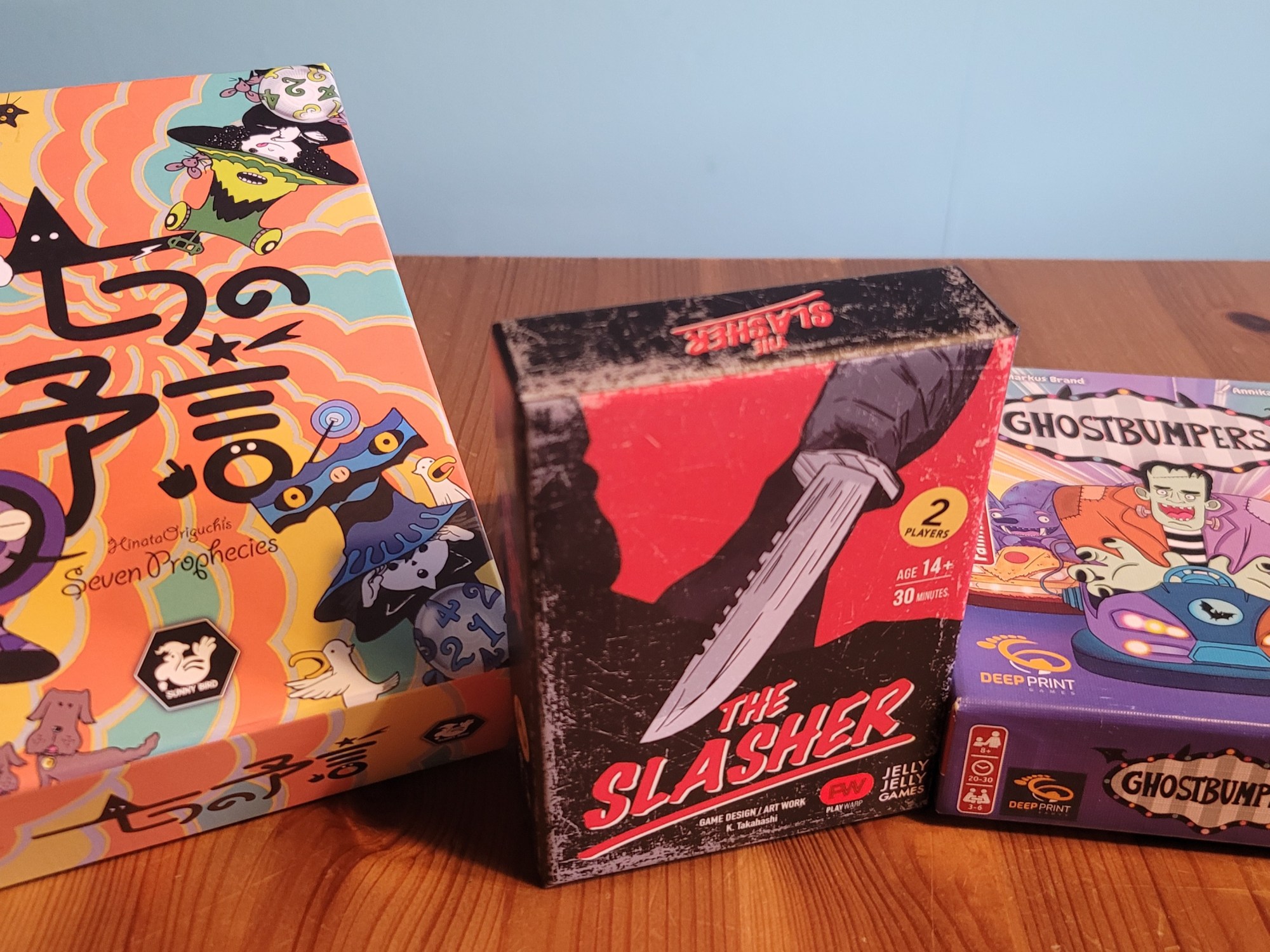 It’s about the loud, often intrusive ramming and bumping into each other, while seated in dinky, electrical wagon while noisy pop songs of yesteryear blare from tinny loudspeakers all while slightly drunk teens are laughing over who rammed whom. In other words, it is silly and chaotic. It follows some basic rules and is over so quickly, you might as well have another go. It doesn’t hurt, and even if it does, this only lasts until you’ve managed to throw somebody else off, and the schadenfreude threatens to overcome the entire table. It is rare that the a trick-taking game’s theme is so neatly expresses what playing it feels like. Ghostbumpers is impressively close to being Bumper Cars – The Trick-Taking Game.